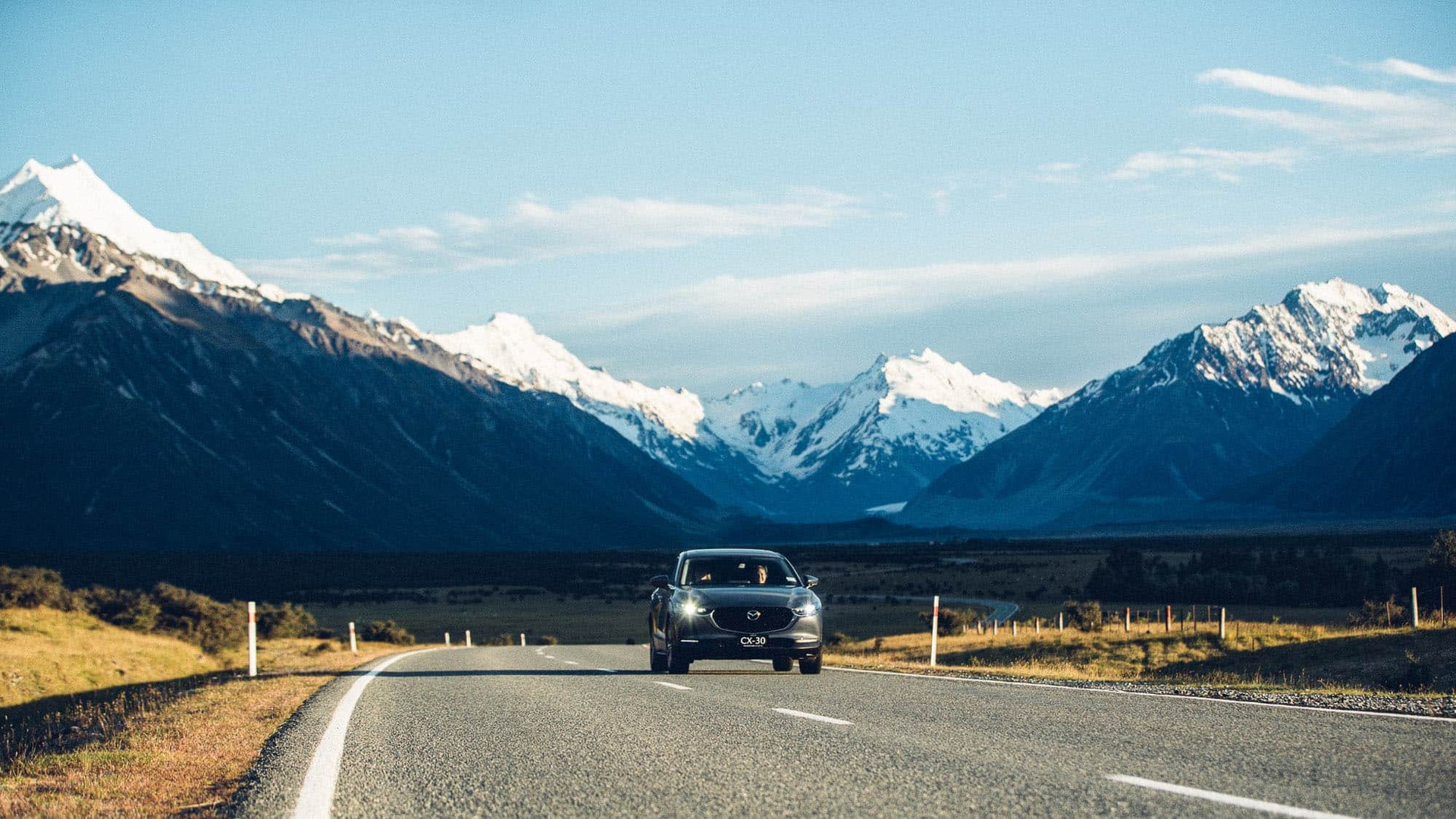 Anke and I settle back in for the two-hour drive to the start of our hiking spot at Aoraki/Mount Cook National Park, home of New Zealand’s tallest peak, and I begin to test out the CX-30’s safety features.