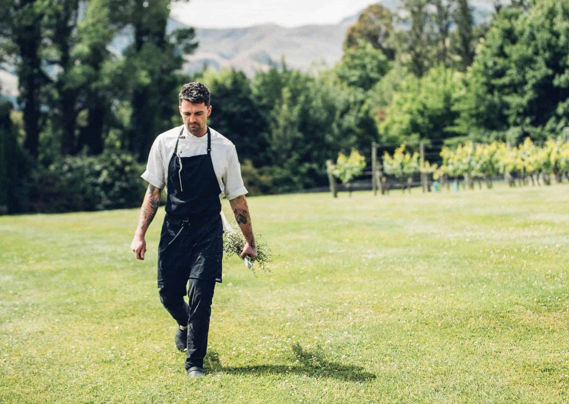 Executive chef Vaughan Mabee (2019 New Zealand Chef of the Year) greets us, settles us into a sleek garden glasshouse, and explains each of the dishes, served by a fleet of professional wait staff.