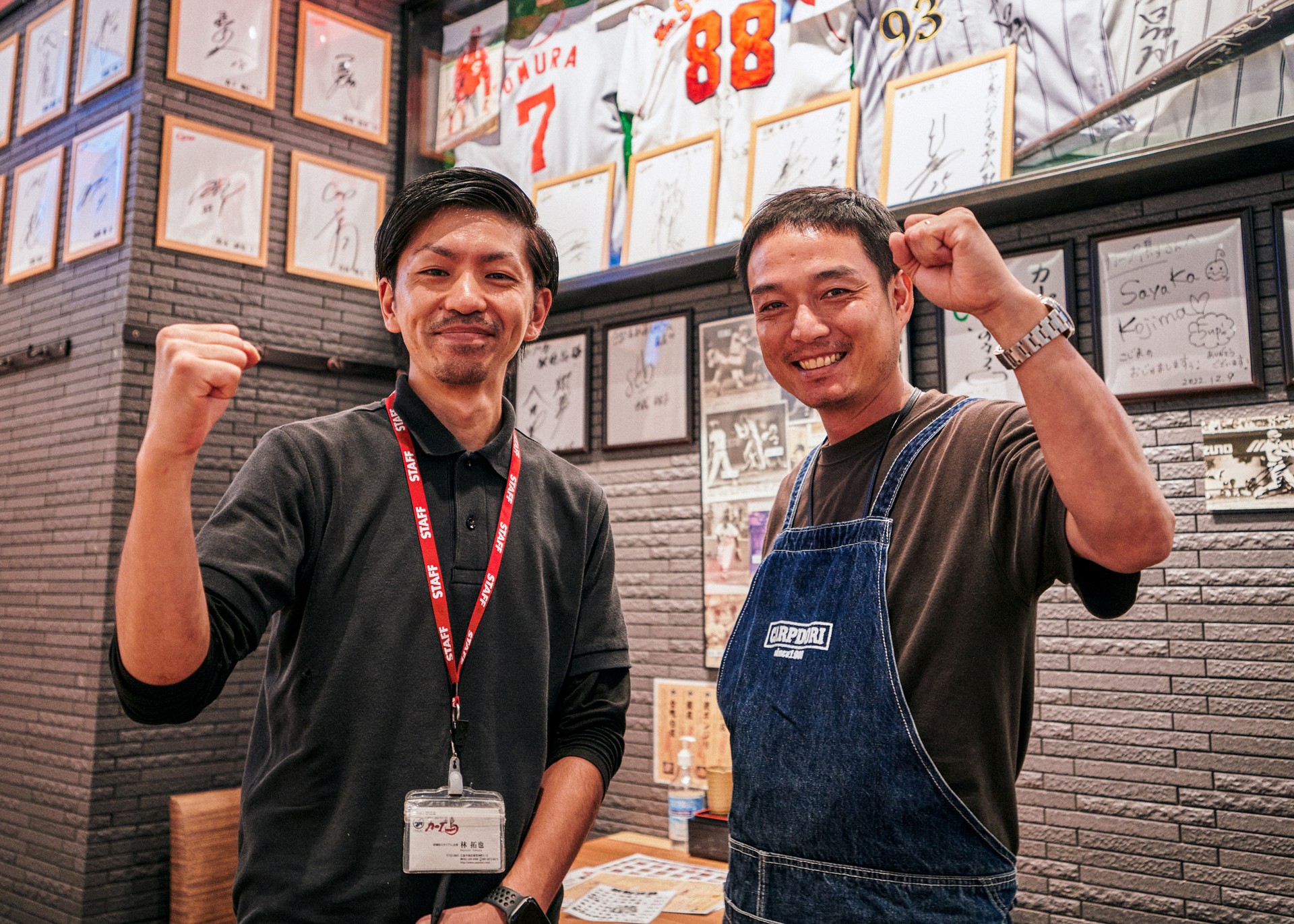 Ryosuke Muta, CEO of yakitori grilled-chicken-skewer restaurant chain Carp Dori, is the perfect example of a steadfast and resolute Hiroshima Toyo Carp fan. Founded in 1980 by Muta’s father, Carp Dori is most famous for having its chicken-skewer dishes named after the Hiroshima Toyo Carp players. If, for example, you were to place an order for Ohsera, you would get a plate of grilled chicken skins, one of Carp Dori’s most popular dishes. This restaurant always has a special place in the hearts of like-minded fans, and plenty of them make a pilgrimage there whenever they have a chance.